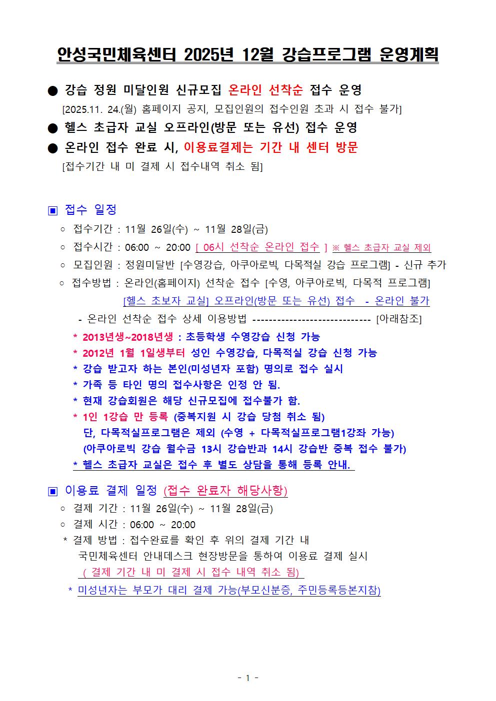 | 2025년 12월 강습프로그램 운영 계획2025-11-24 | |||