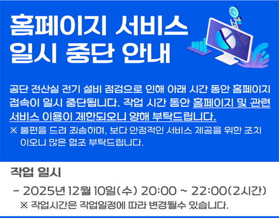 | 안성시국민체육센터 홈페이지 서비스 일시 중단 안내(12.10 20시~)2025-12-08 | |||