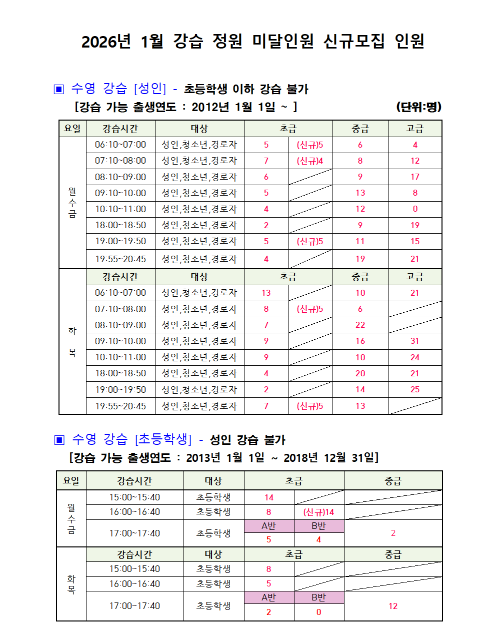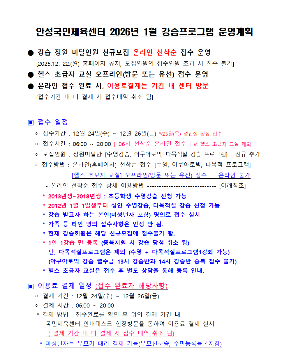 | 2026년 1월 강습프로그램 운영 계획2025-12-22 | |||