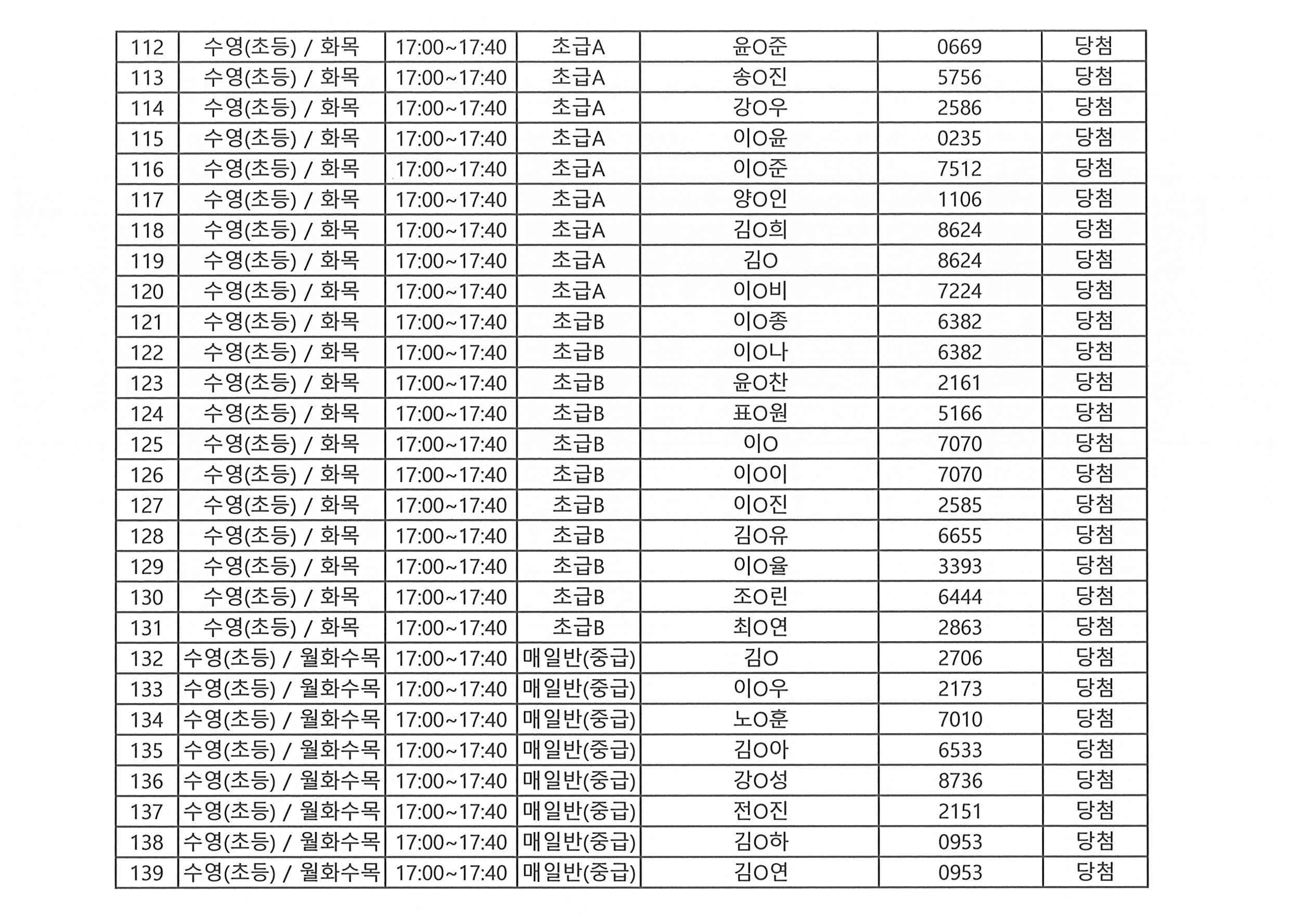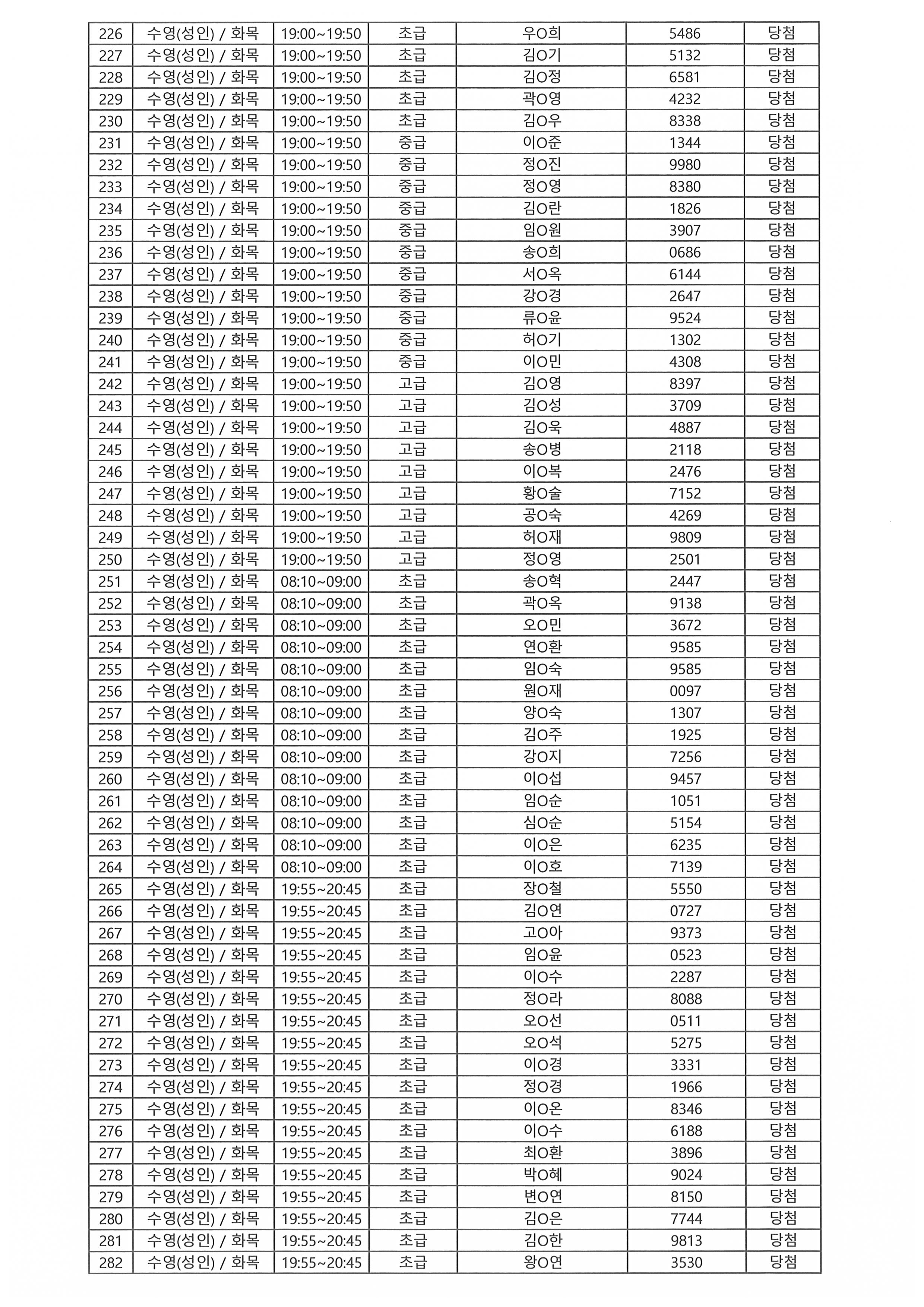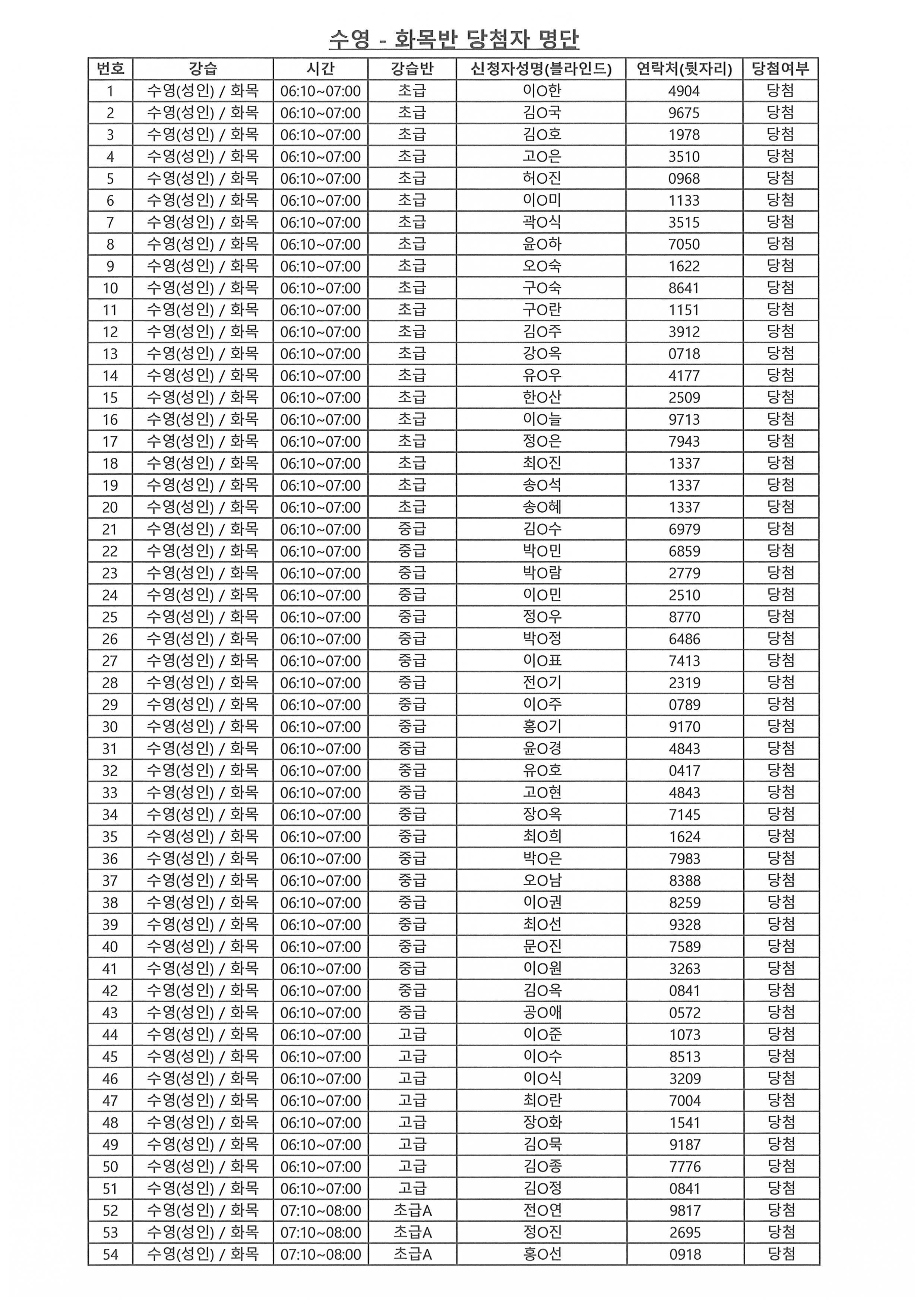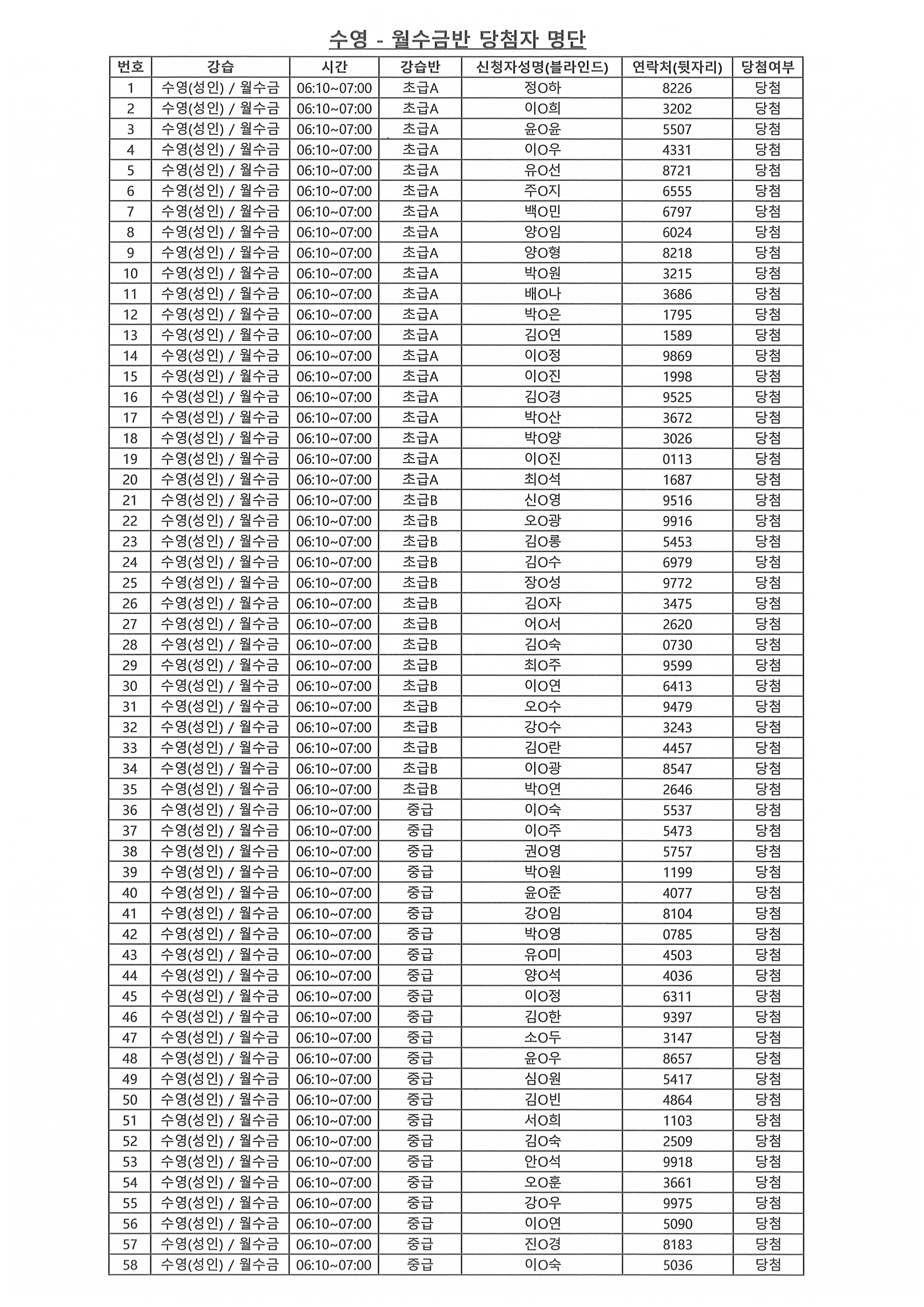 | - 2026년 강습프로그램 당첨자 안내-2026-01-27 | |||