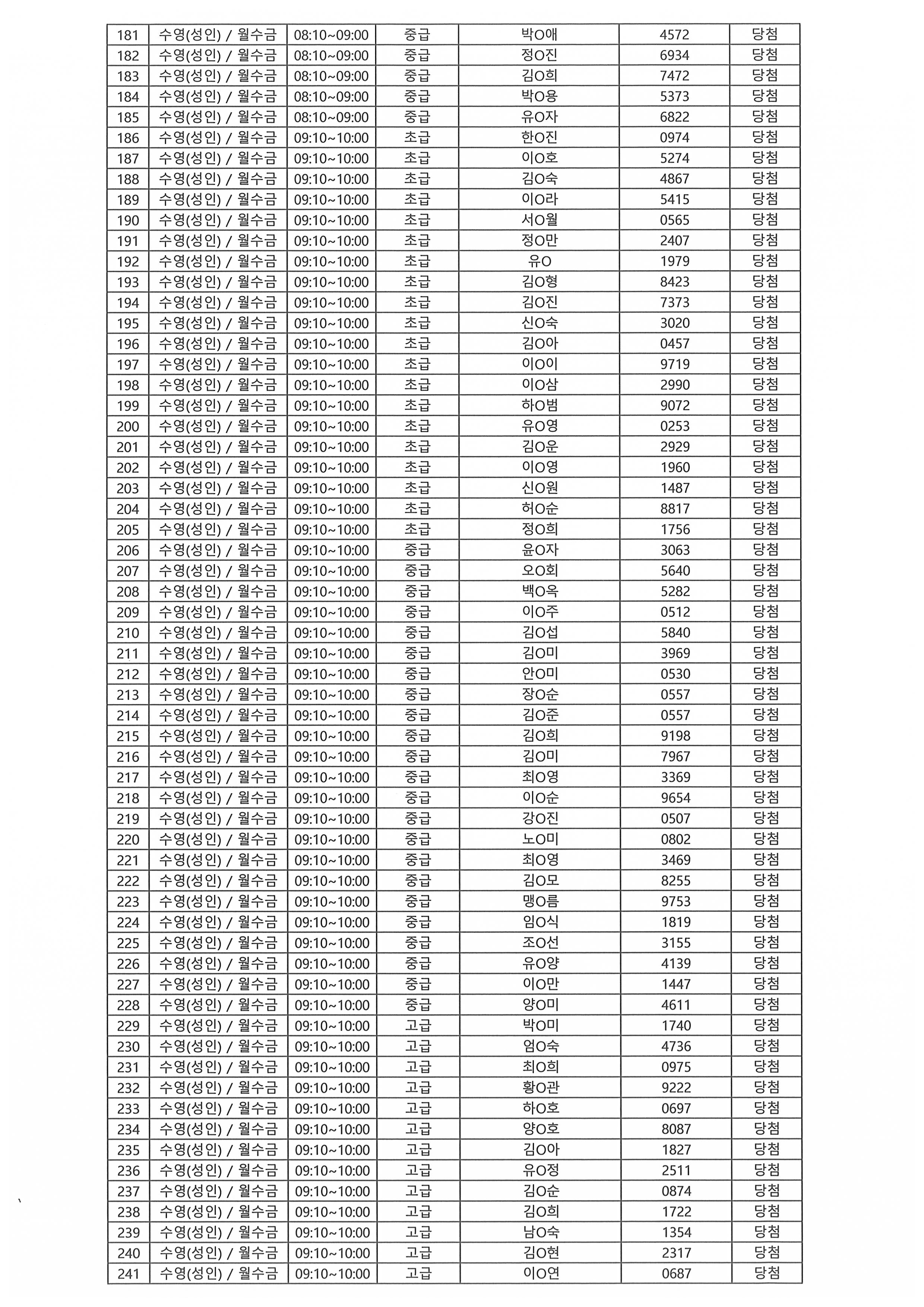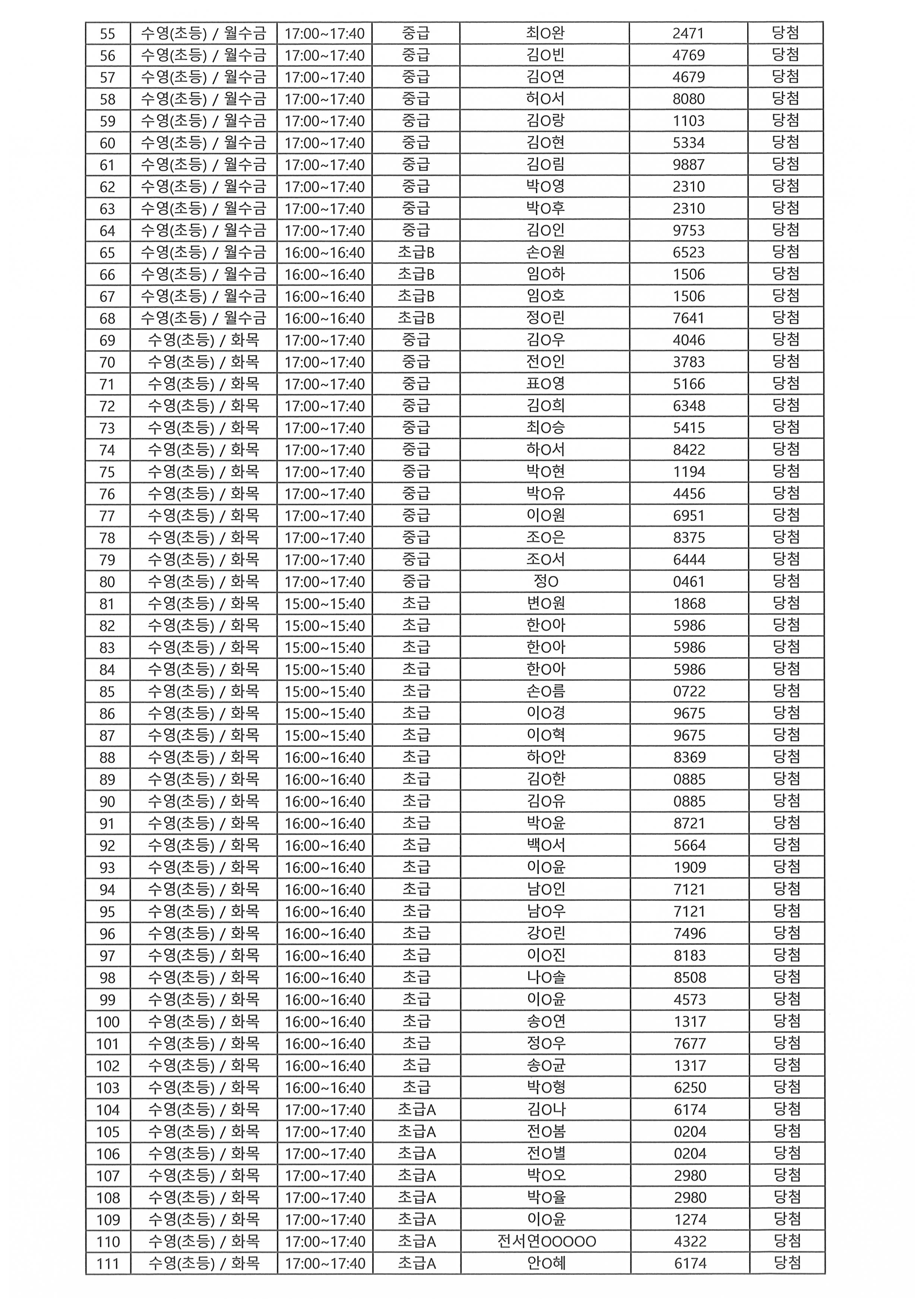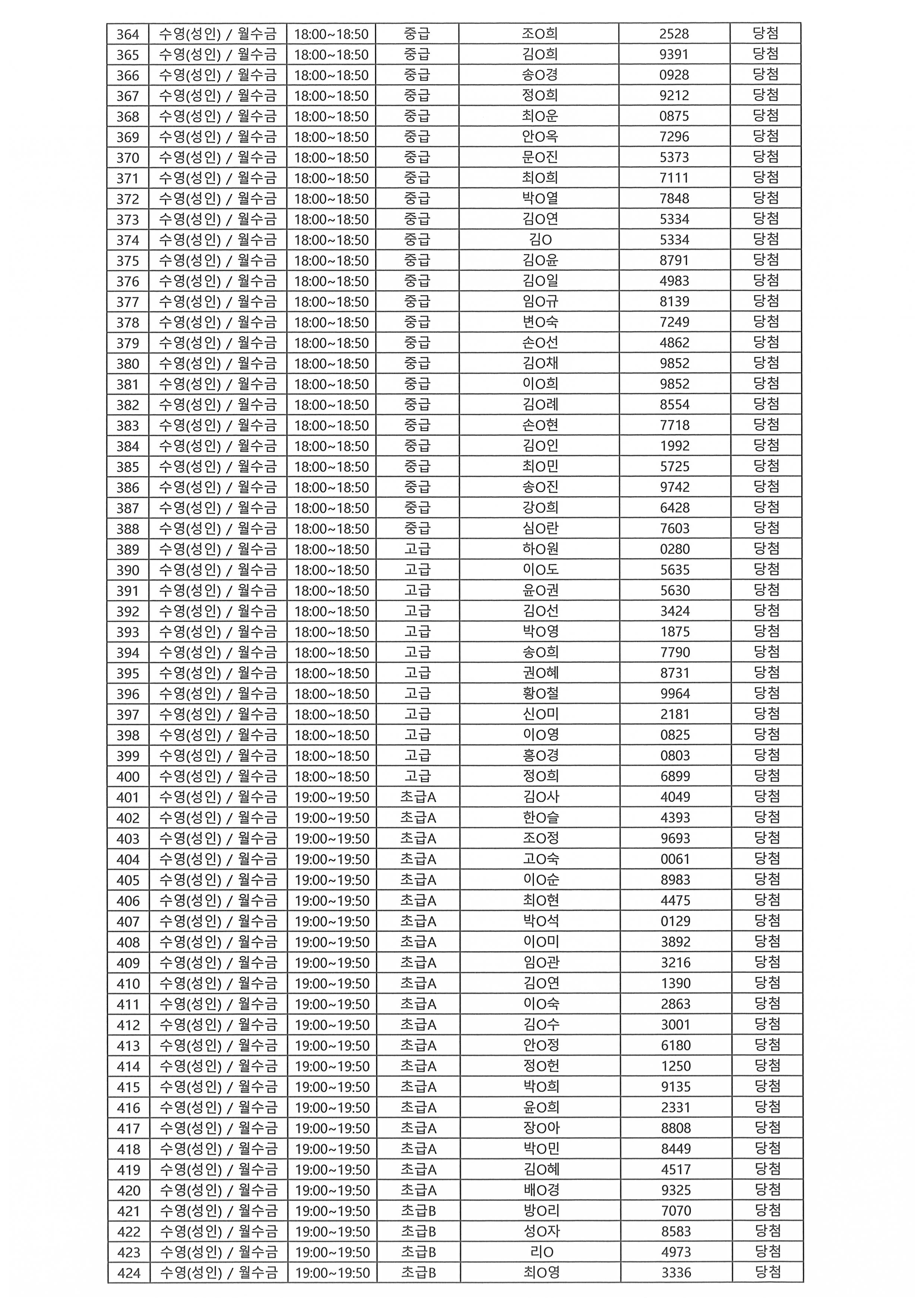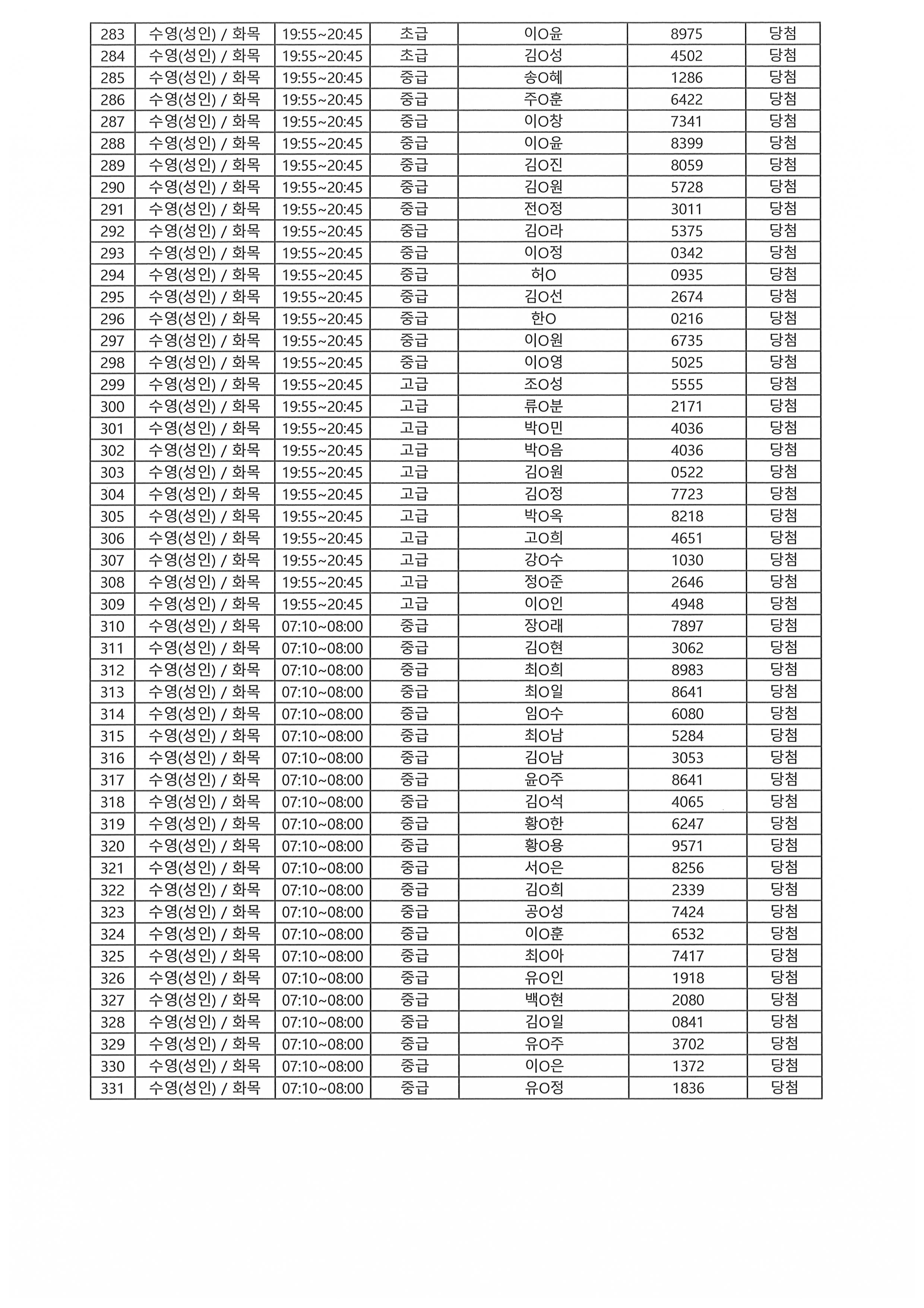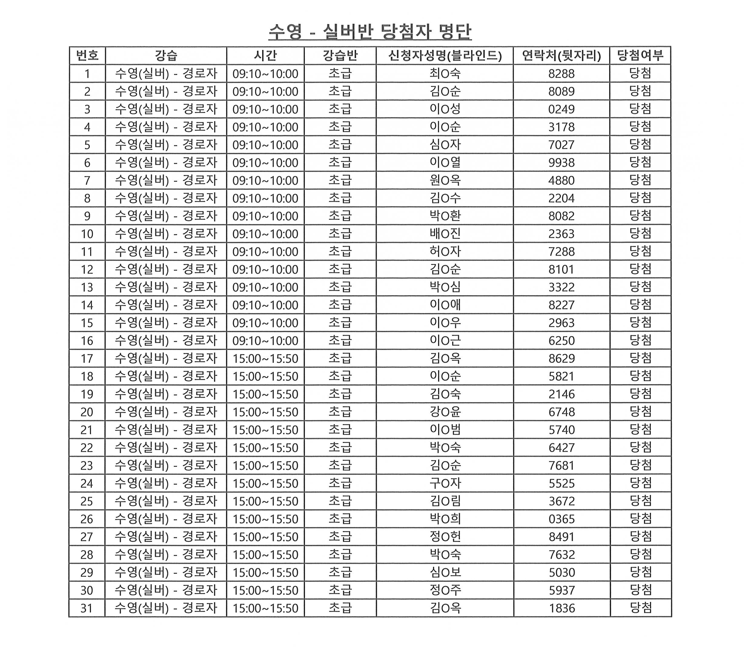 | - 2026년 강습프로그램 당첨자 안내-2026-01-27 | |||
