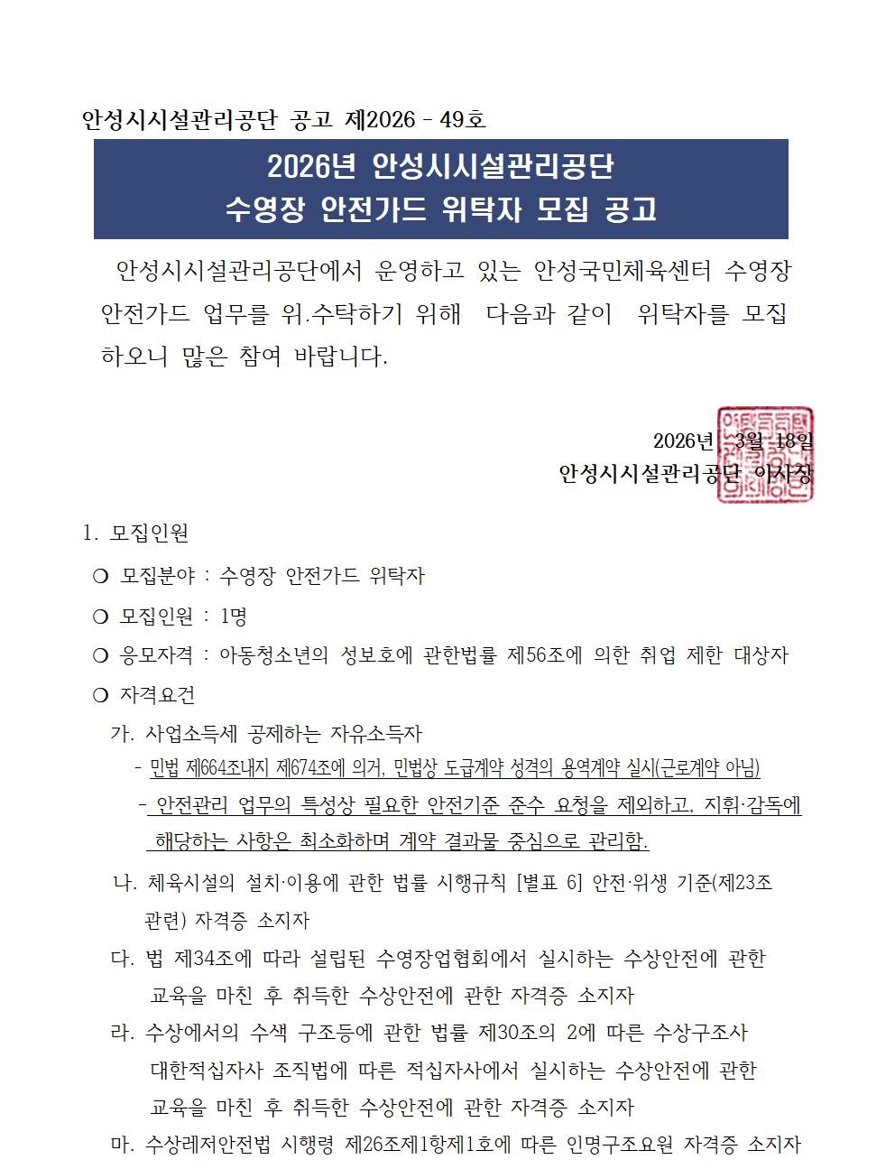 | 2026년 안성시 국민체육센터 수영장 안전가드 위탁자 모집2026-03-18 | |||